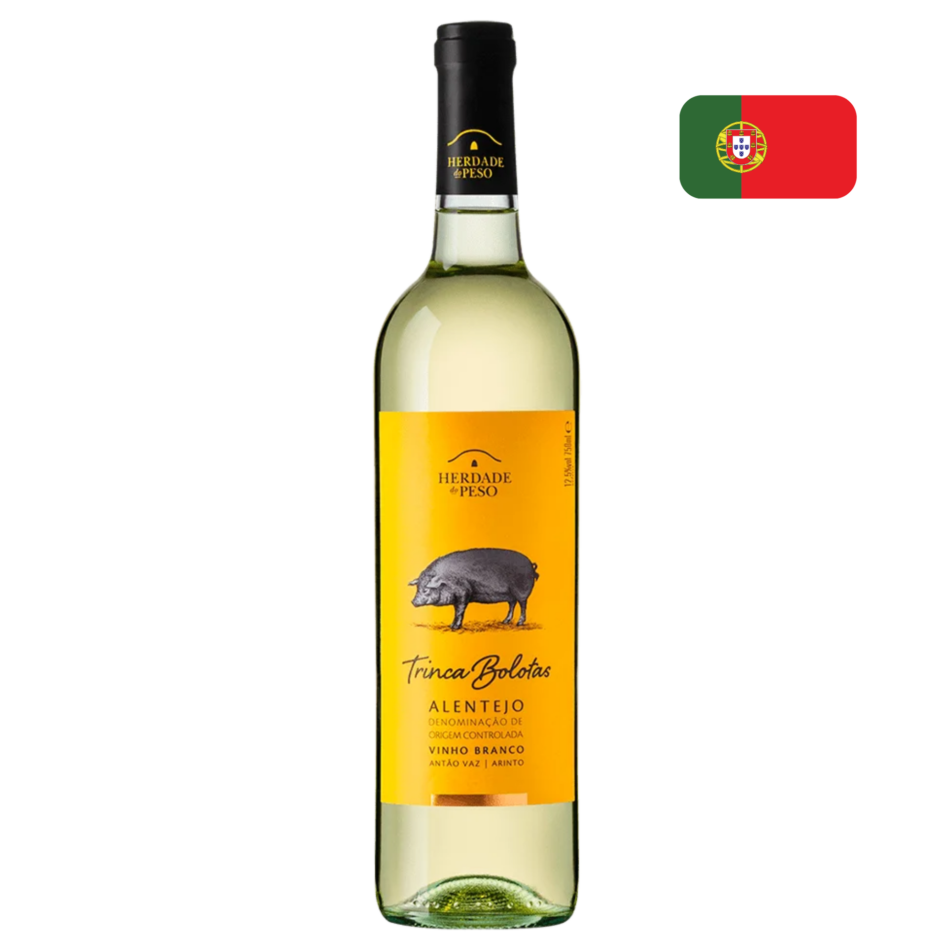 Após o grande sucesso do Trinca Bolotas tinto, nasce seu irmão branco. Proveniente da Vidigueira, região alentejana com grande tradição de produção de brancos, capaz de conservar a delicadeza e o frescor que eles necessitam. Antão Vaz contribui com os perfumes florais e cítricos, assim como volume em boca. Arinto, clássica uva portuguesa em plena ascenção, assegura a acidez firme, a estrutura e a persistência em boca.